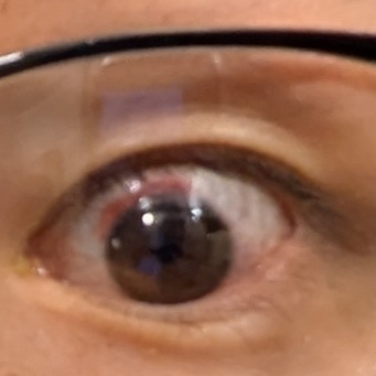翌日朝の目はこんな感じに上のところが赤くなってました。